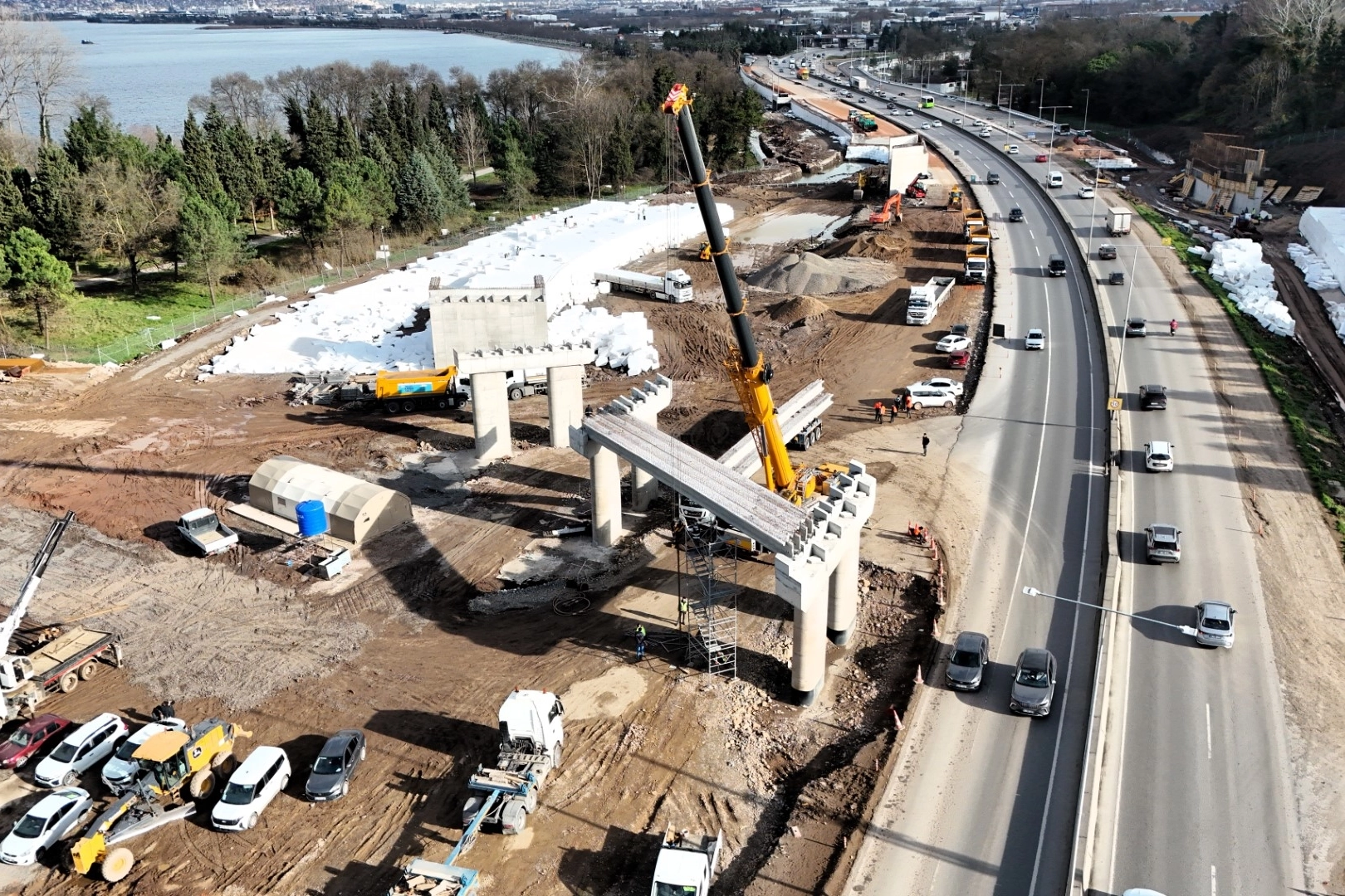 Kuzey Yanyol Dere Köprüsü’nde 13 adet, Başiskele Kavşağı Giriş Köprüsü’nde ise 39 adet olmak üzere toplam 52 adet prekast kirişin montajı tamamlandı. Proje genelinde 9 köprü için toplam 155 adet prekast kiriş kullanılacak.